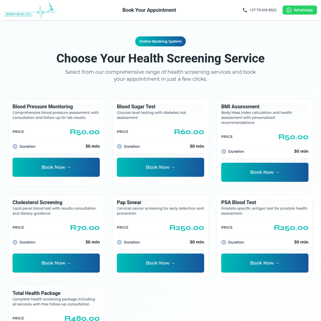 Our platform provides a modern, user-friendly booking experience designed specifically for independent health practitioners and their clients. With a clean, professional interface, clients can easily browse your services, check real-time availability, and book appointments in minutes—no account required. You can personalize the system with your branding, service details, and working hours, giving your practice a polished, trustworthy online presence while reducing administrative stress.